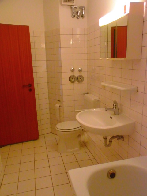 Das Bad ist mit Fliesen, alle anderen Räume mit Laminat ausgelegt.