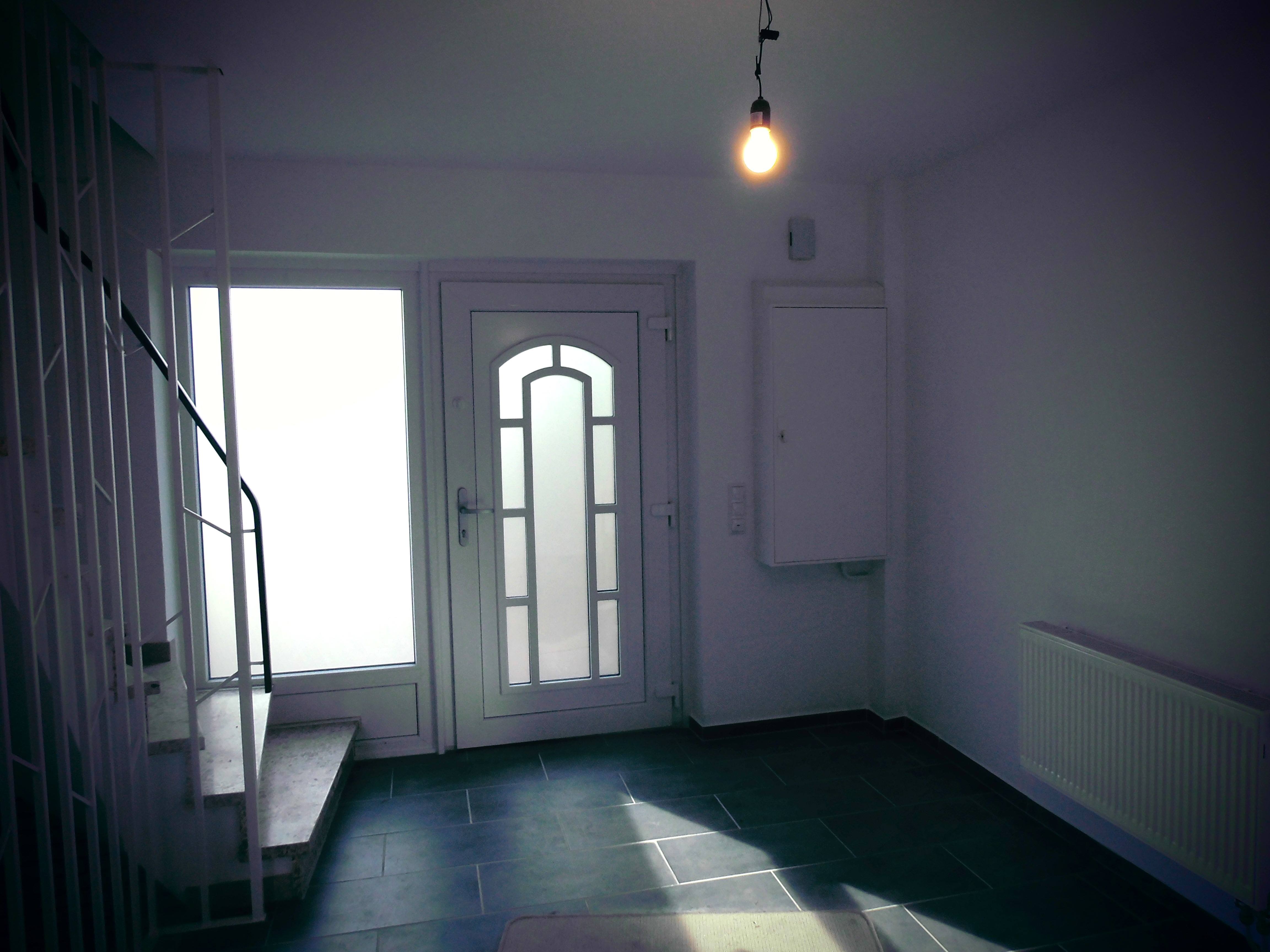 Im Erdgeschoß befinden sich der großzügige Eingangsbereich mit Diele und Zugang zum OG u. zum Keller, der geräumige Wohn-/Essbereich mit Zugang zur Terrasse und die neue Einbauküche