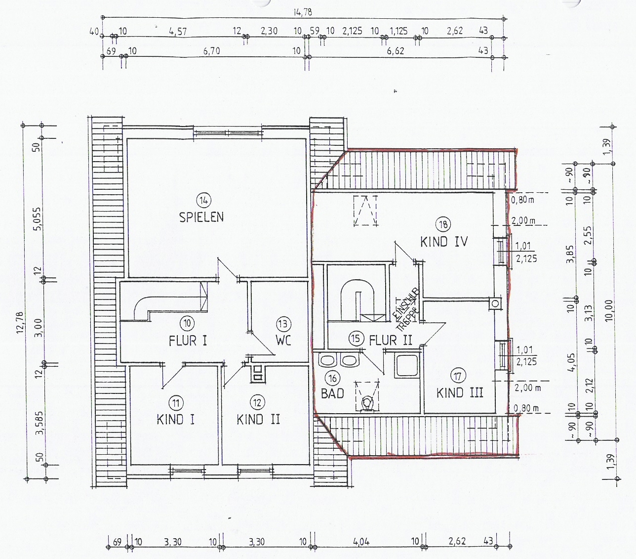 Im Obergeschoss befinden sich der Flur, 2 Kinder-/Gäste- oder Arbeitszimmer und ein weiteres Bad.
