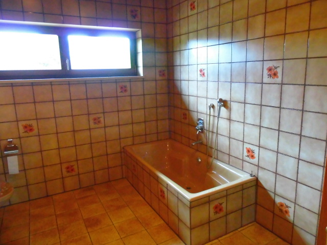 Im Erdgeschoss befinden sich der Eingangsbereich mit eingebauter Garderobe, die gr. Diele mit Kachelofen, der Wohnbereich mit ca. 33m² u. Zugang zur Terrasse, ein Schlafzimmer mit Einbauschrank und 3 weitere Zimmer, die als Kinder-/Gäste-/Schlaf- oder Arbeitszimmer genutzt werden können. Desweiteren befinden sich eine gr. Einbauküche mit Essplatz, ein Gäste-WC mit Einbauschrank und ein gr. Vollbad mit 2 Waschbecken, WC, Bidet, Dusche und Wanne im EG.